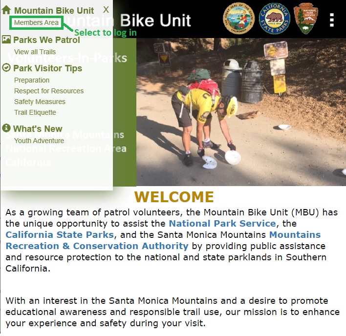 The MBU web site contains a members-only area. To log into this restricted section, point your browser to the website homepage at https://mountainbikeunit.com and click on the right-menu link "Members Area". You can also access the login page directly at https://mountainbikeunit.com/Login.php.